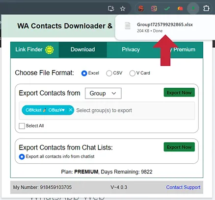 With the WA Contact Extractor Extension, extracting WhatsApp group contacts