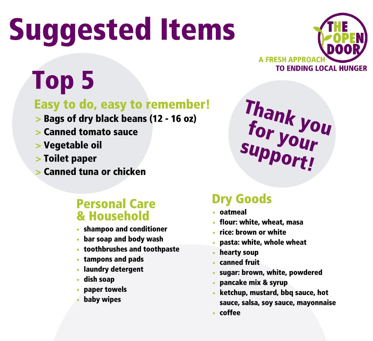 In addition to online fundraising, we have 6 donation drop-off locations throughout the metro to donate non-perishable goods, essential household and personal care items.